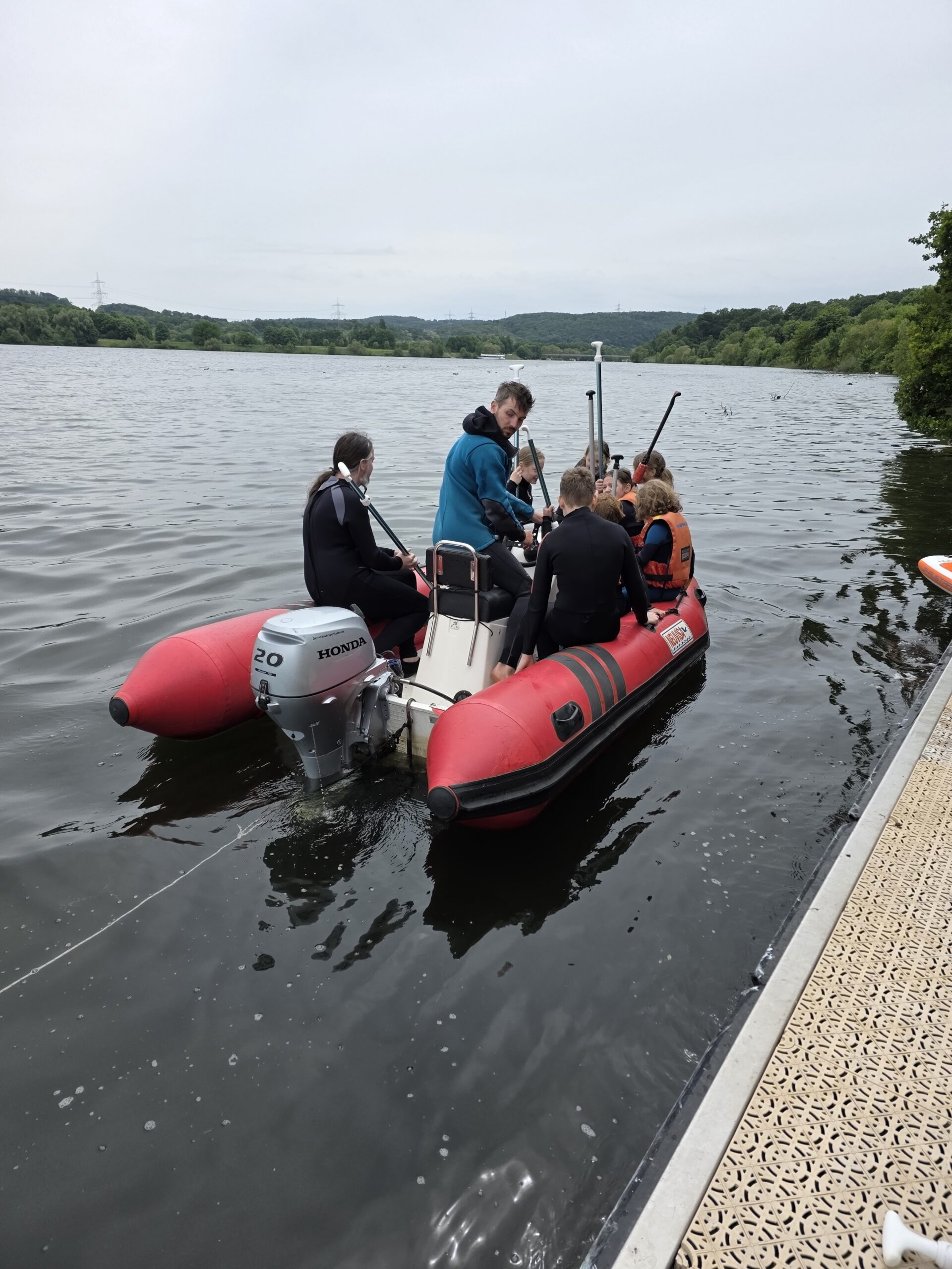 Zum Abschluss des Tages konnten diejenigen, die Lust hatten, mit dem Motorboot ein Stück gegen den Wind hinausfahren. Anschließend ließen sie sich auf dem SUP vom Wind zurück in Richtung Steg treiben. Es war ein besonderes Erlebnis trotz des frühlingshaften Wetters. Der Tag endete pünktlich vor dem einsetzenden Regen. Alle waren zufrieden und freuen sich schon auf die nächsten Wassersportaktionen.