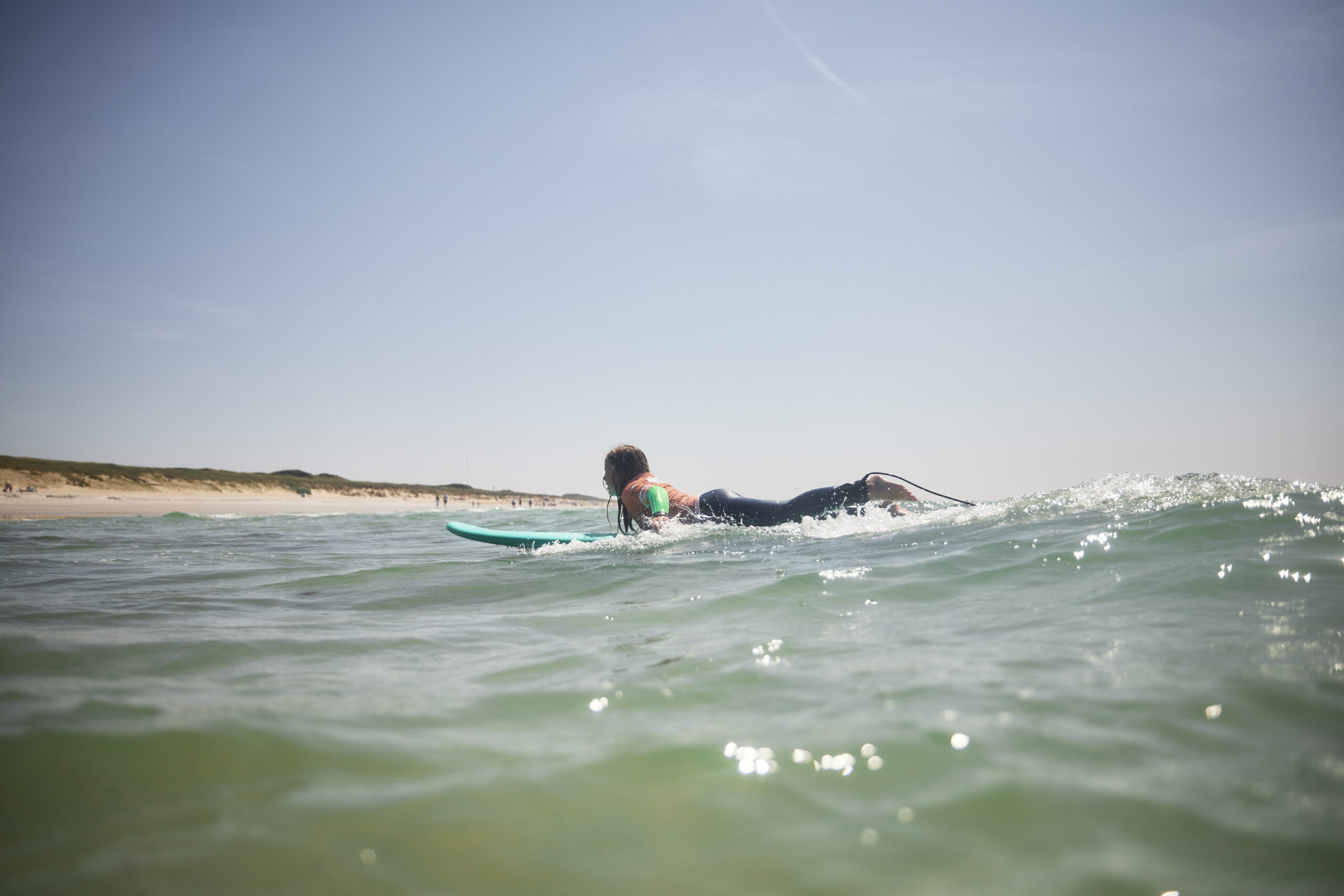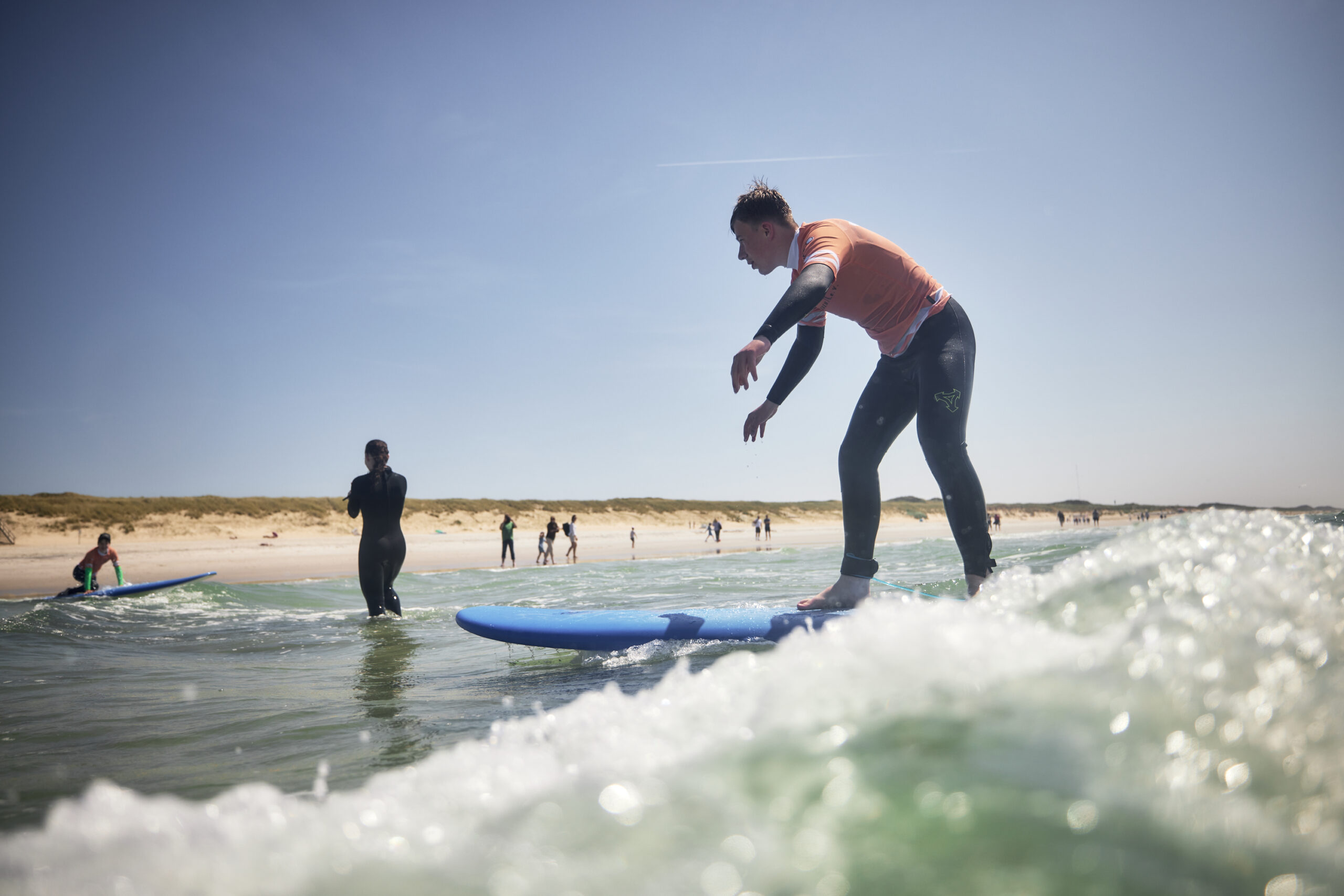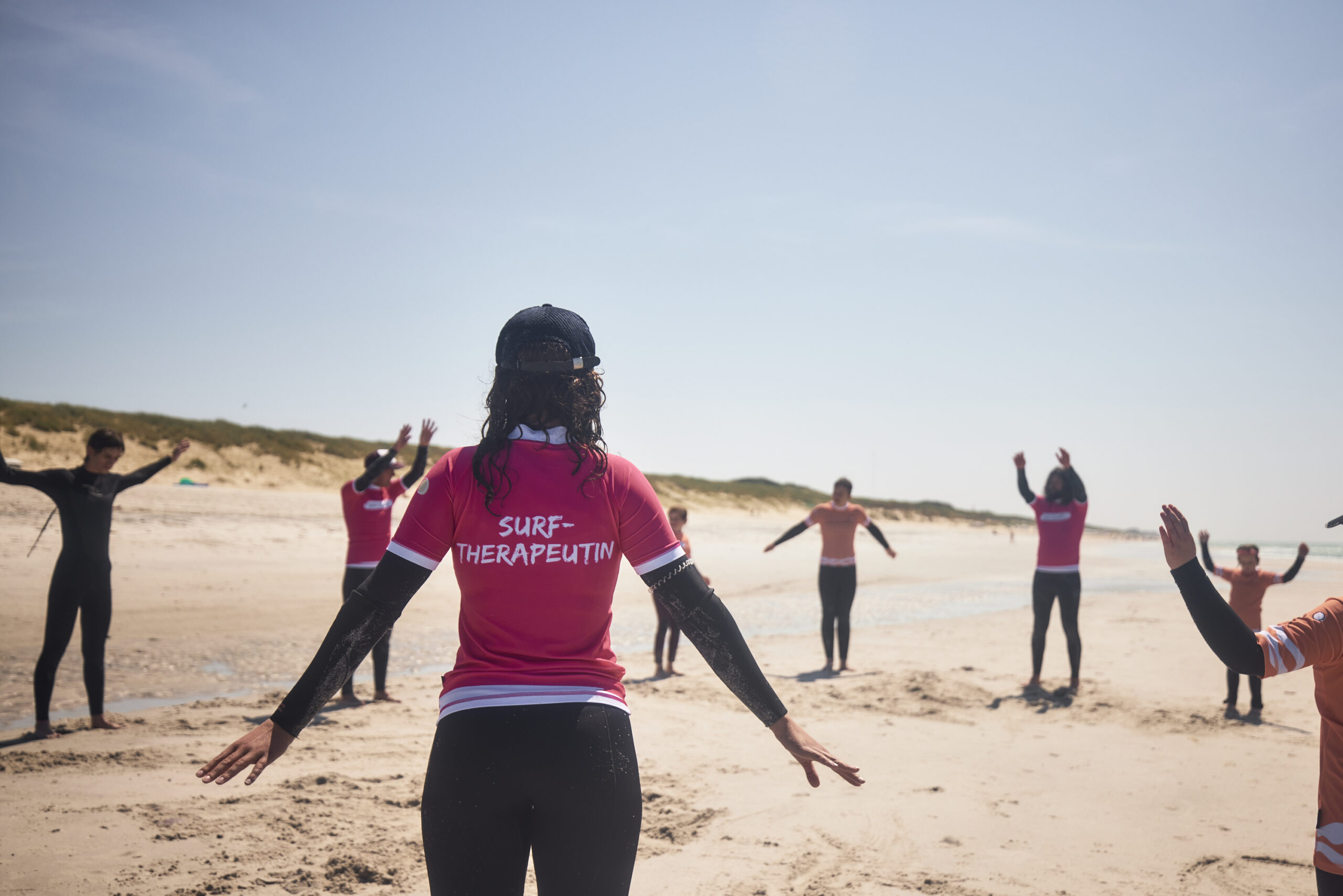 Nach einer theoretischen Einführung zu Sicherheit, Wellenverhalten und Surfgrundlagen folgte der praktische Teil: gemein-sames Ankommen im Wasser, Aufwärmübungen im Sand und schließlich der Schritt aufs Brett. Auch wenn die Nordsee an diesem Tag eher ruhige Bedingungen bot, waren die Fortschritte bemerkenswert. Unterstützt durch das erfahrene Team vor Ort gelang es vielen Teilnehmenden, erste Wellen zu nehmen – im Liegen, kniend und bei einigen sogar stehend. Und plötzlich war da nicht nur der Stolz, sondern echtes Surfer-Feeling.