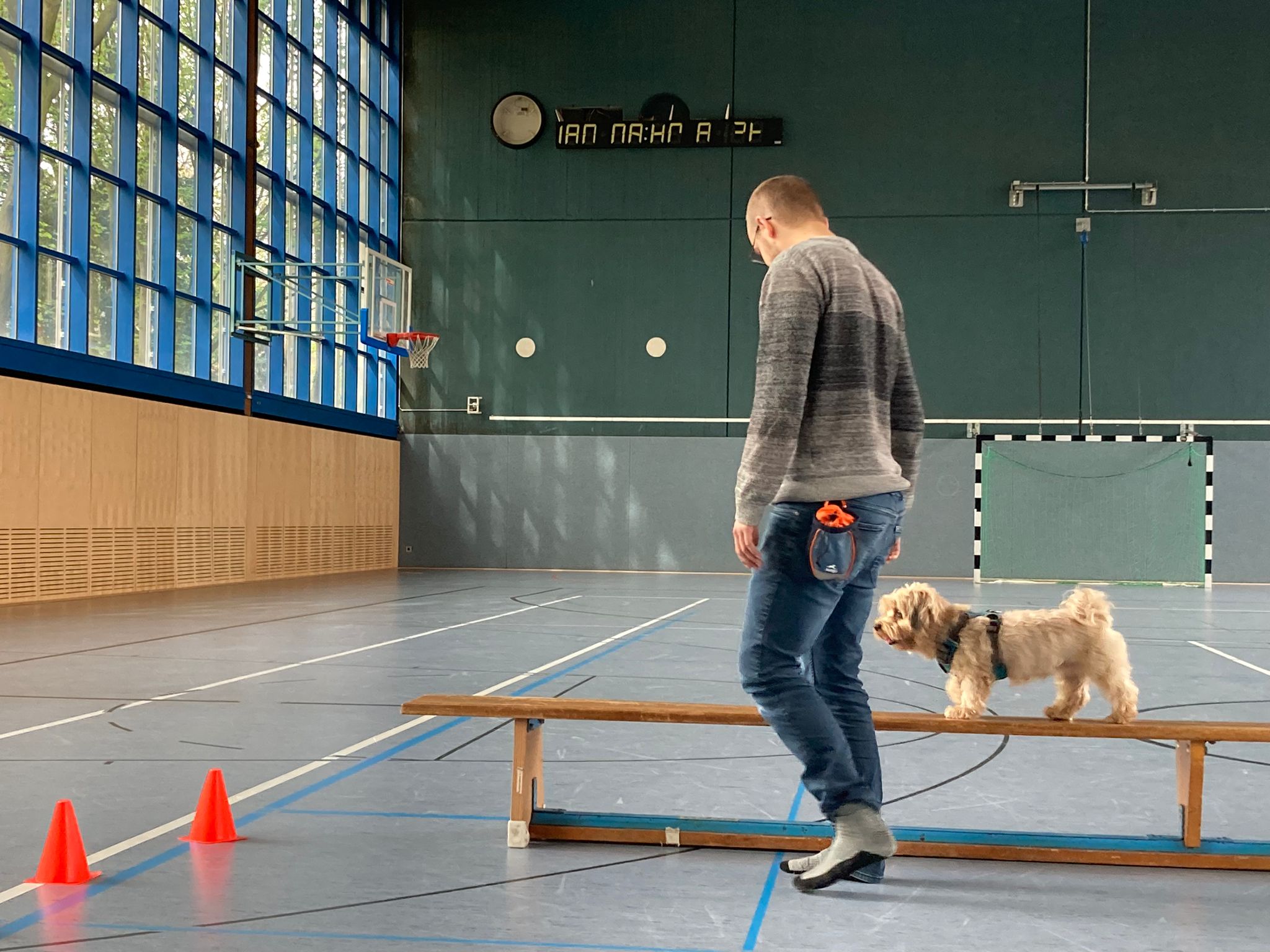 Im April 2023 stand in unserem Nachsorgesport der Besuch eines ausgebildeten Therapiehundes und seinem Trainer an. Um die Teilnehmer*innen auf den Besuch von Ubuntu, den Therapiehund, vorzubereiten, lernten die Kinder gemeinsam mit Trainer Daniel zunächst u.a. die Grundbedürfnisse eines Hundes kennen und probten gelungene Verhaltensweisen im Umgang mit Hunden. Am zweiten Tag war es dann so weit: Ubuntu kam zu Besuch. Gemeinsam mit Ubuntu absolvierten die Teilnehmer*innen einen großen Parcours und rannten um die Wette. Natürlich wurden auch einige Streicheleinheiten und Leckerlies verteilt. Die Kinder hatten viel Spaß bei diesem besonderen Aktionstag und hätten am liebsten noch viel mehr Zeit mit Therapiehund Ubuntu verbracht