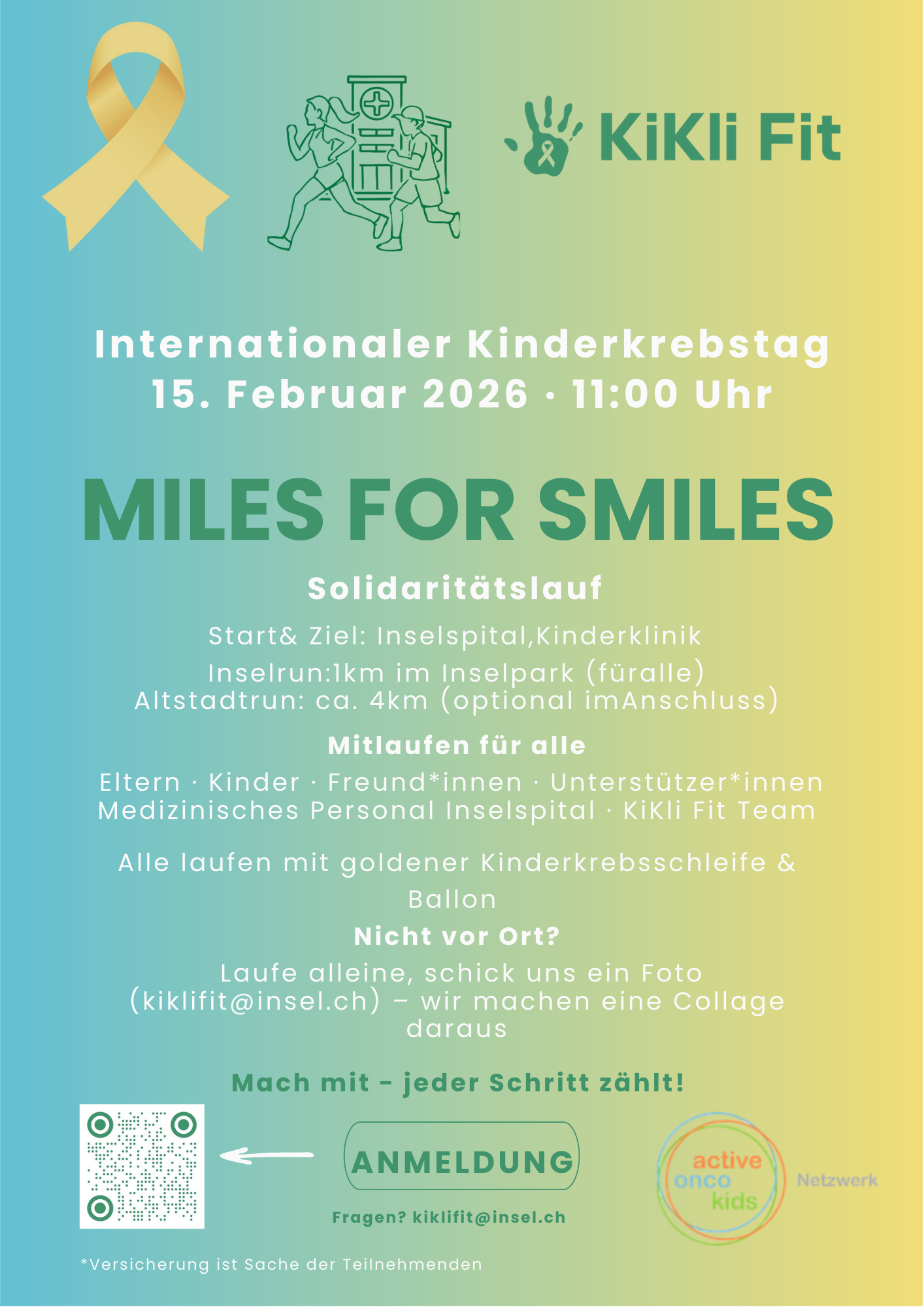 Eingeladen sind Eltern, Kinder, Freundinnen, Unterstützerinnen, das medizinische Personal des Inselspitals sowie das KiKli Fit Team. Auch eine Teilnahme aus der Ferne ist möglich: