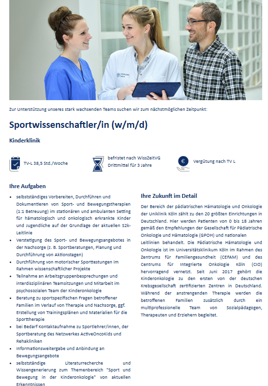 Neue Stellenausschreibung für den NAOK Standort IK Köln