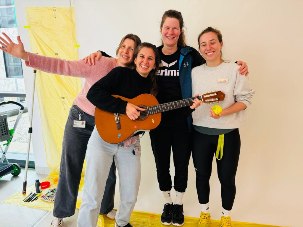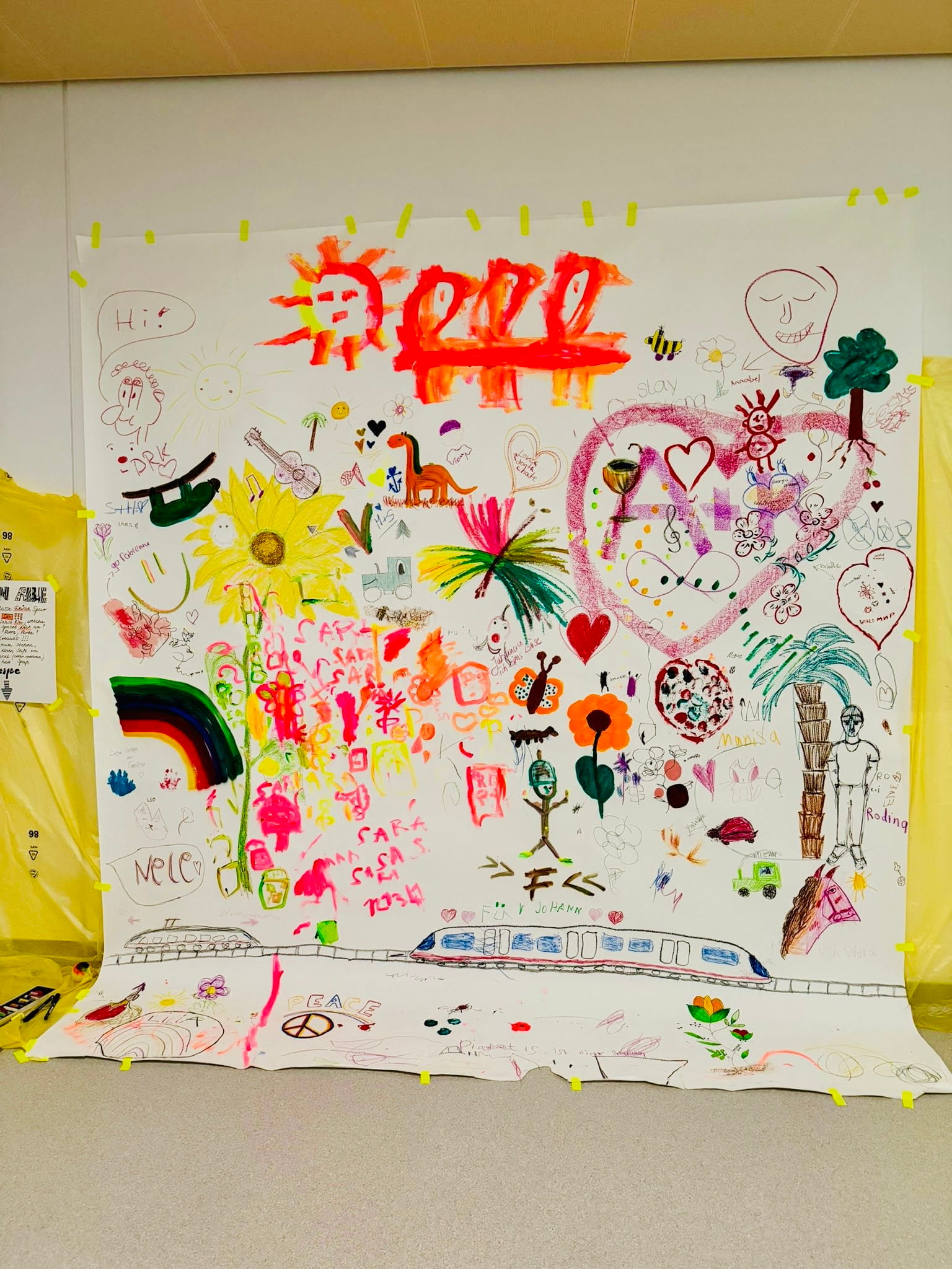 Über vier Wochen hinweg fand von Montag bis Freitag ein abwechslungsreiches Programm unter wechselnden Wochenthemen wie Zirkus, Fasnet und Tierwelt statt. Zu den Angeboten gehörten unter anderem kurze Eltern-Fit- und Entspannungsformate, Sportstationen auf den Fluren, kreative Bastel- und Kunstaktionen, Singrunden, Märchen, Koch- und Backangebote sowie Spiel- und Turnieraktionen wie Mario Kart oder FIFA. Außerdem konnten die Familien bei einer Zirkusaktion mit dem Circus-Harlekin-Team verschiedene Zirkusdisziplinen ausprobieren und Zaubertricks erlernen. In Kooperation mit dem Hobby-Horsing-Team der FT Freiburg bewältigten sie verschiedene Hindernisse. Außerdem beteiligten sie sich am Kunstprojekt „Spuren hinterlassen“, bei dem über mehrere Tage hinweg eine große Leinwand gemeinsam von vielen kleinen und großen Patient*innen und deren Familien gestaltet wurde.
