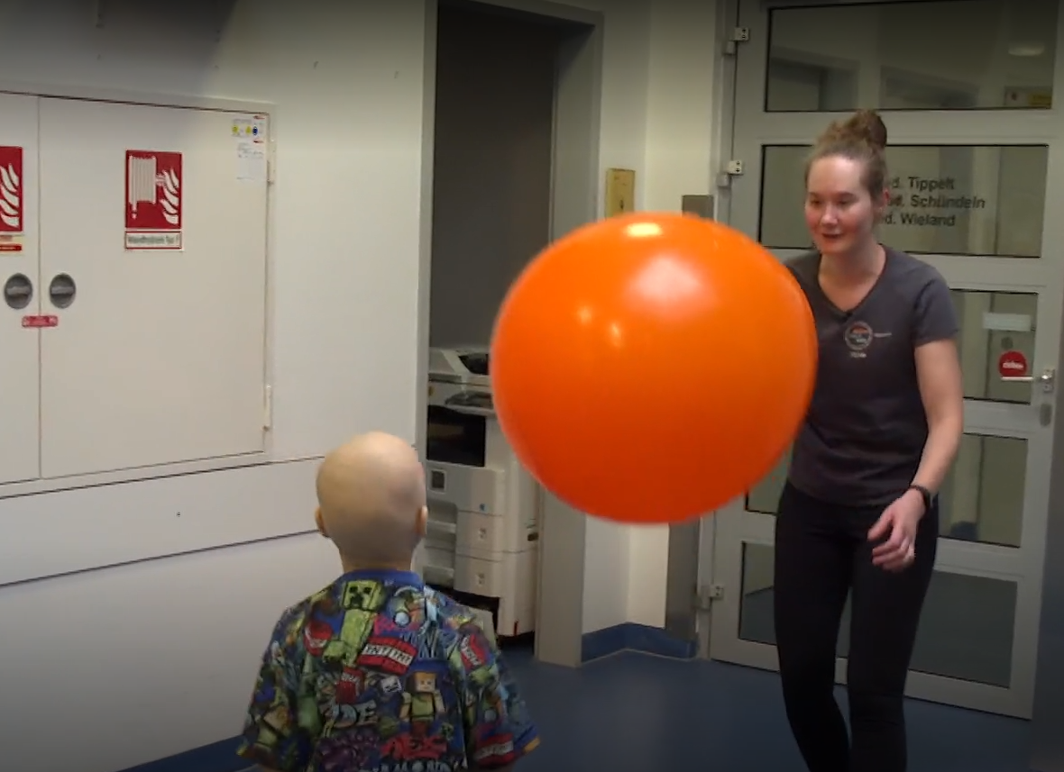 Genau hier setzt die Sporttherapie in der Kinderonkologie an. Spielerisch und individuell abgestimmt erleben die Kinder hier wieder Momente, in denen sie einfach Kinder sein dürfen. Sie können Bewegung ausprobieren, Kraft tanken, Spaß haben – und entscheiden dabei immer über Inhalte mit und bringen eigene Ideen ein. Viele Kinder berichten, dass sie beim Spielen und Bewegen für einen Moment vergessen, dass sie im Krankenhaus sind.